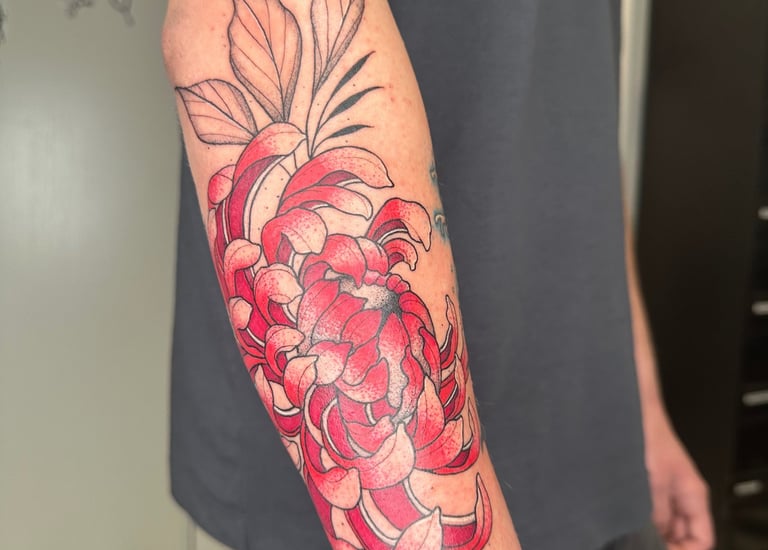 Tatoueuse forte de plusieurs années d'expérience, elle apprécie autant les projets floraux, fins, épurés que les tatouages plus sombres, détaillés, avec une touche "witchy" qui lui est propre.